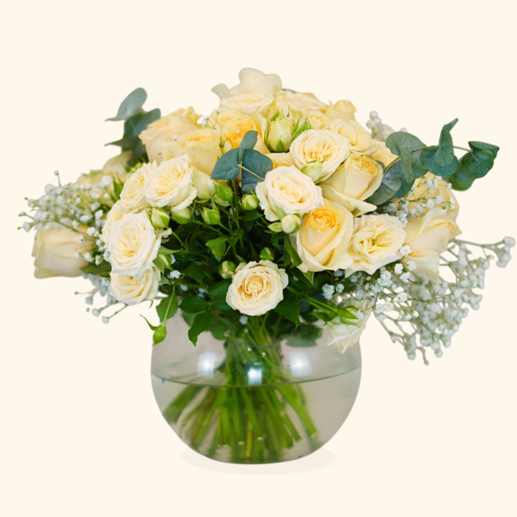 •  Beautifully Arranged in a Round Glass Bowl