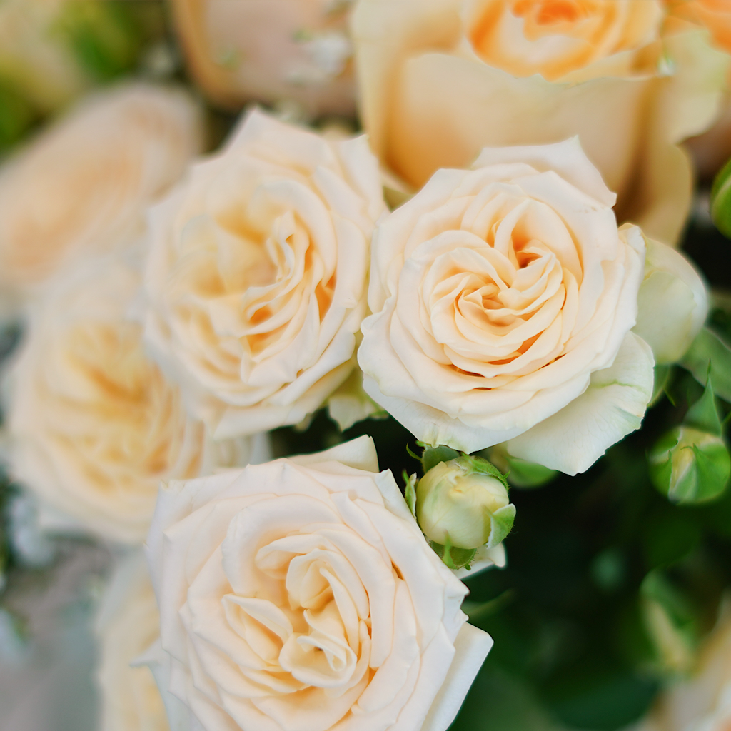 •  7 Peach spray roses